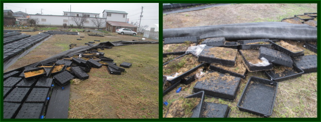 2013年3月11日、播種から4ヶ月、小さな丸みを帯びた芽がたくさん発生して来ました。あまり小さいので写真では分かりにくいのですが、無数の発芽が成長して来ています。